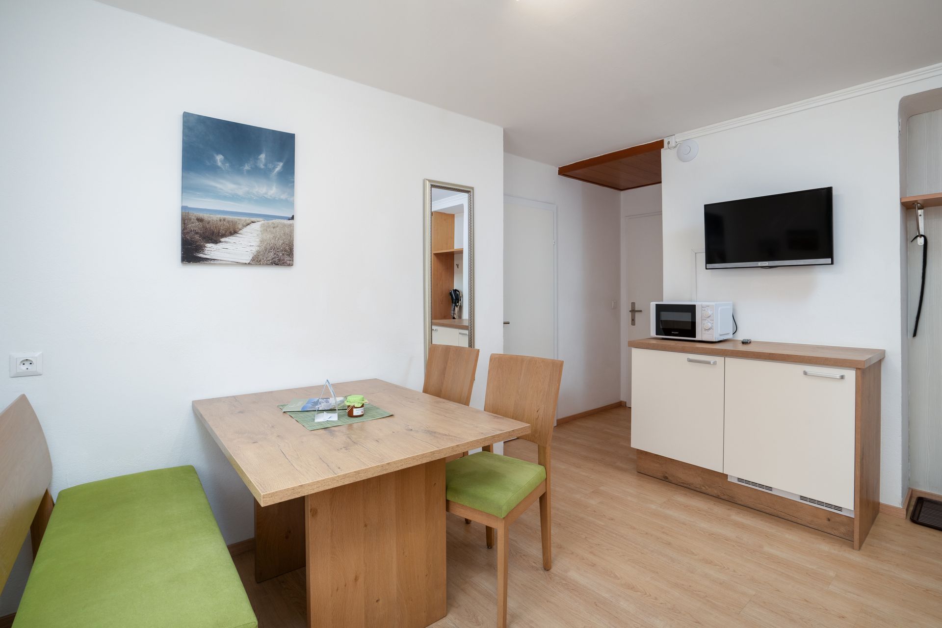 Unser Apartment TOP 8 befindet sich im 1. Stockwerk. Die Wohnung verfügt über ein Schlafzimmer mit Doppelbett sowie ein weiteres mit zwei Einzelbetten, ideal für Familien oder kleine Gruppen. Die vollausgestattete Küche, kostenfreies WLAN, Kabel-TV und einem Lift im Haus sind entspannte, autofreie Urlaubstage garantiert – im Sommer wie im Winter.