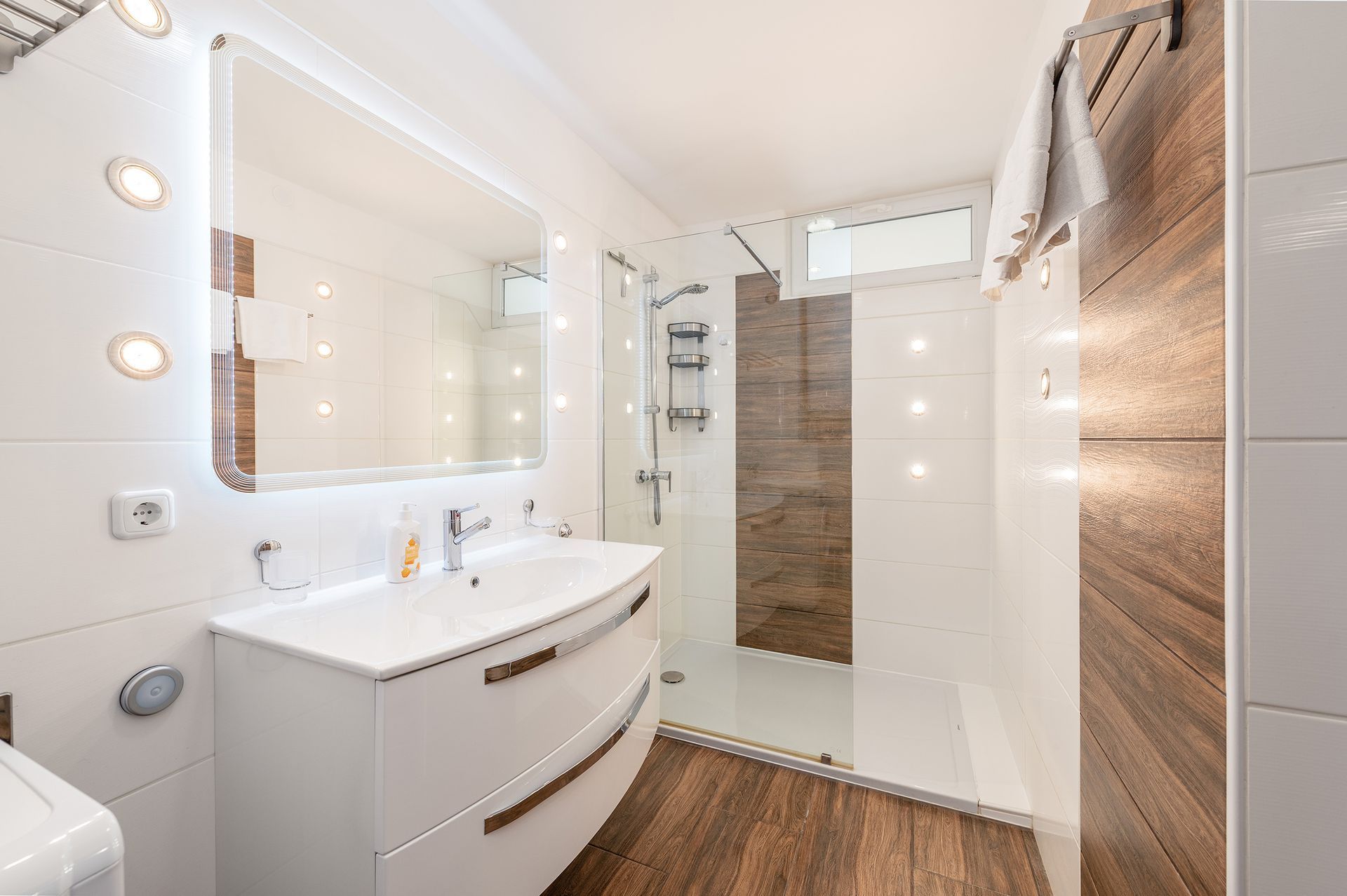 Das Badezimmer ist modern ausgestattet und verfügt über eine komfortable Dusche sowie ein separates WC. Kostenloses WLAN und ein moderner TV-Bereich runden das Angebot ab.